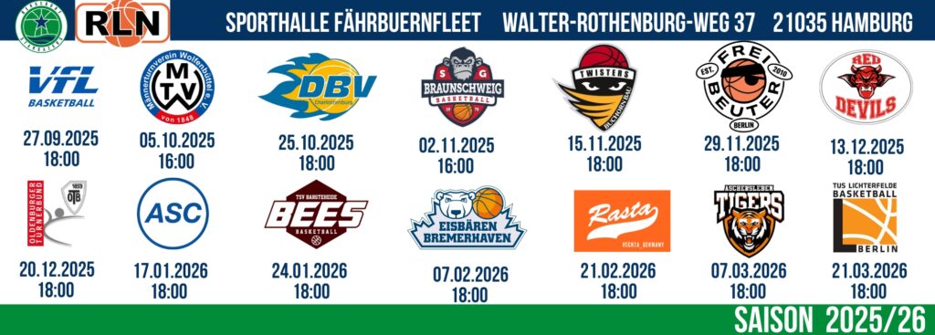 Regionalliga Saison 2025/26 – 1.Regionalliga NordTSG Bergedorf Stargazers Team 2025/26: Es fehlen: Samuel Ogunjimi, Evren Kilinc, Filip Marinkovic, Bastian Schuhmann Unsere Heimspiele Unsere Partner